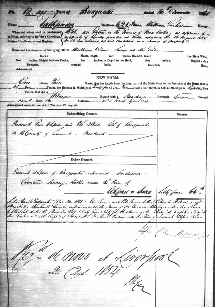 1851 at Pictu in the province of Nova Scotia as app???? by a certificate of registry ????? at Pictu acquired? the 16 Aug 1851.